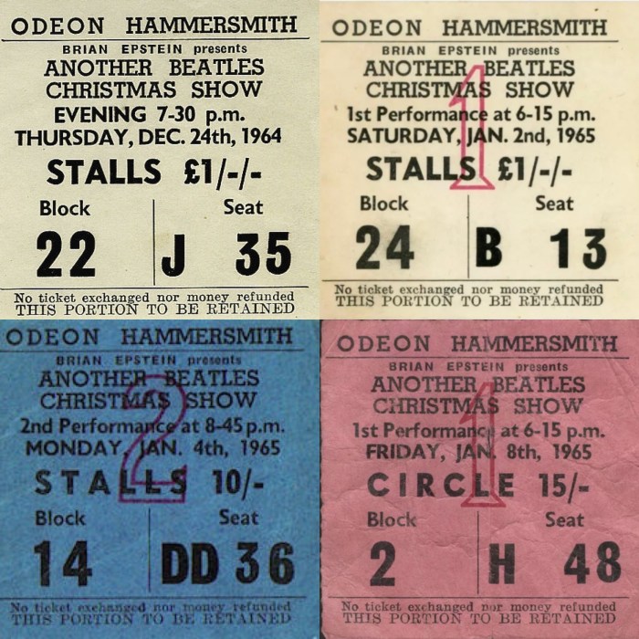 (A selection of tickets from The Beatles’ Hammersmith Christmas residency)
