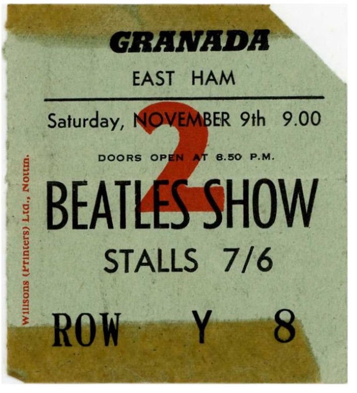 The second time I saw them was on the 9th November 1963 at the East Ham Granada. Again I went with my friend Jennifer and again we had good seats near to the front. There was a lot more hysteria this time and the screaming was deafening. I didn’t know it at the time but Alun Owen the screenwriter was in the audience that night. He was shadowing The Beatles in order to write a film about them, and of course the screenplay he ended up writing became A Hard Day’s Night.