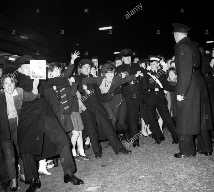 I’ve seen pictures that were supposedly taken outside East Ham Granada on the 9th November 1963 and there’s a large police presence holding back a surging crowd of kids. Did you see any police at the show?